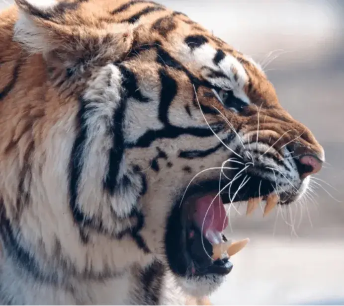 第一大利器、东北虎牙齿十分粗大,呈圆锥状,只要咬住猎物,那基本就是致命的,牙齿可以直接捕杀猎物的要害。