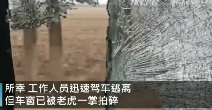不少人也应该想起了东北虎进村的事情,直接一掌就击碎了玻璃,大家可以想象一下,车子玻璃还是比较坚硬了,结果在东北虎的面前,完全是不值得一提,大家可以看一下下面的画面,就是此前东北虎进村时候,这车子被玻璃击碎的情况。