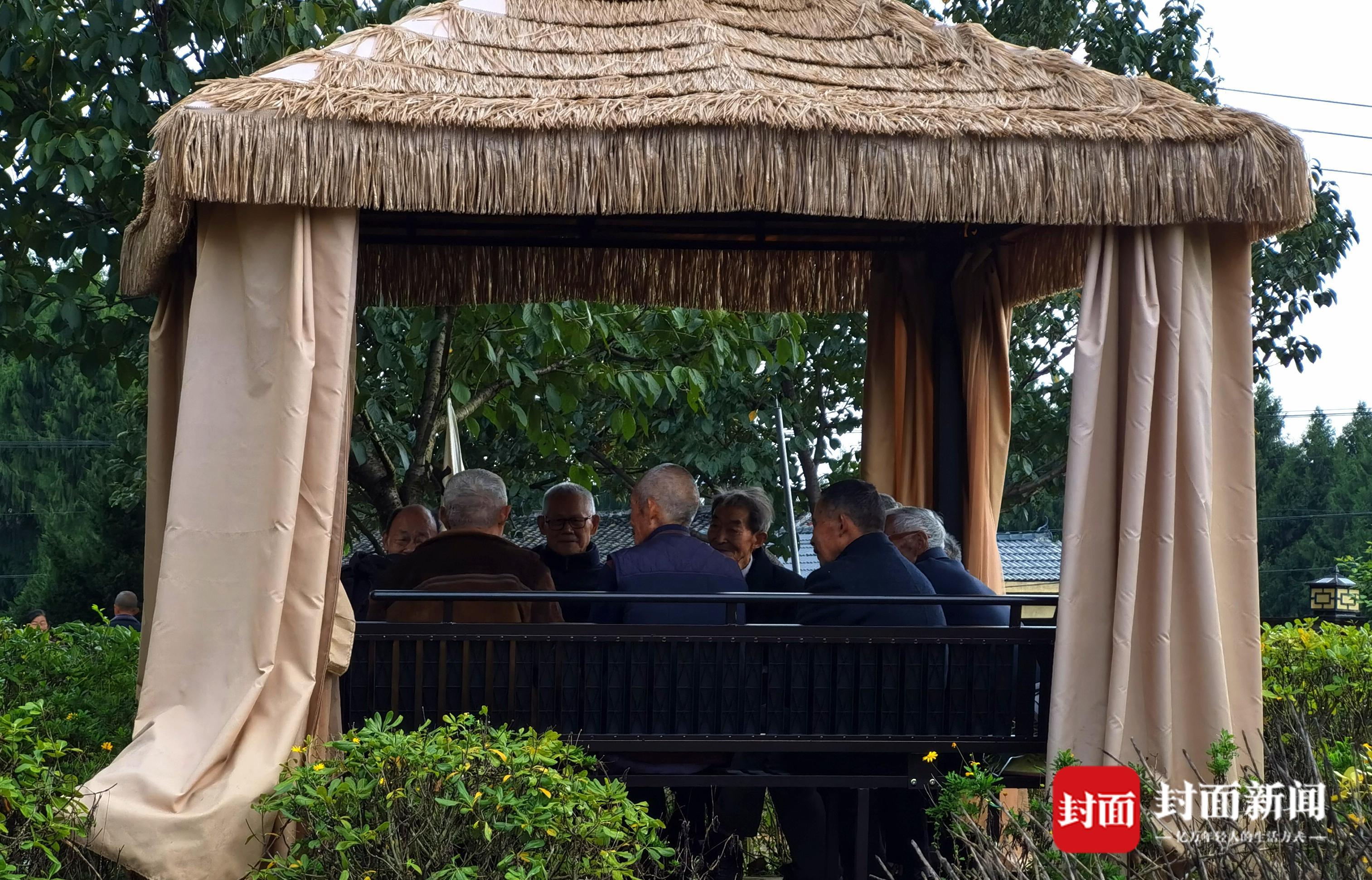 一旁的亭子里,“80后兄弟团”正在聊天。(拍摄:曾业)