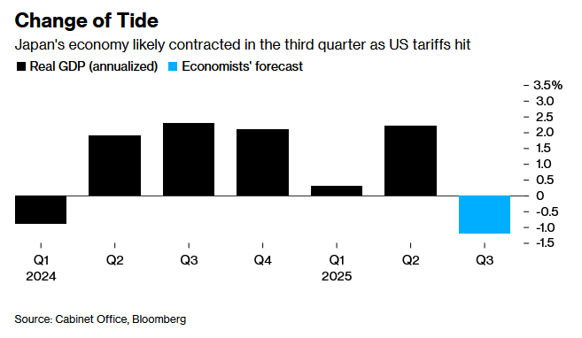 受调查的经济学家认为,作为全球第四大经济体的日本正受到美国关税的显著冲击,预计第三季度出口将环比下降4%,这一降幅较此前预估的3.1%进一步扩大。